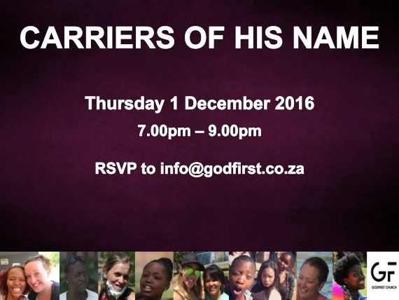 Come join us for an evening reflecting on the beauty that God has in store for His daughters, as we explore what it means to be “Carriers of HIS name” in our everyday lives