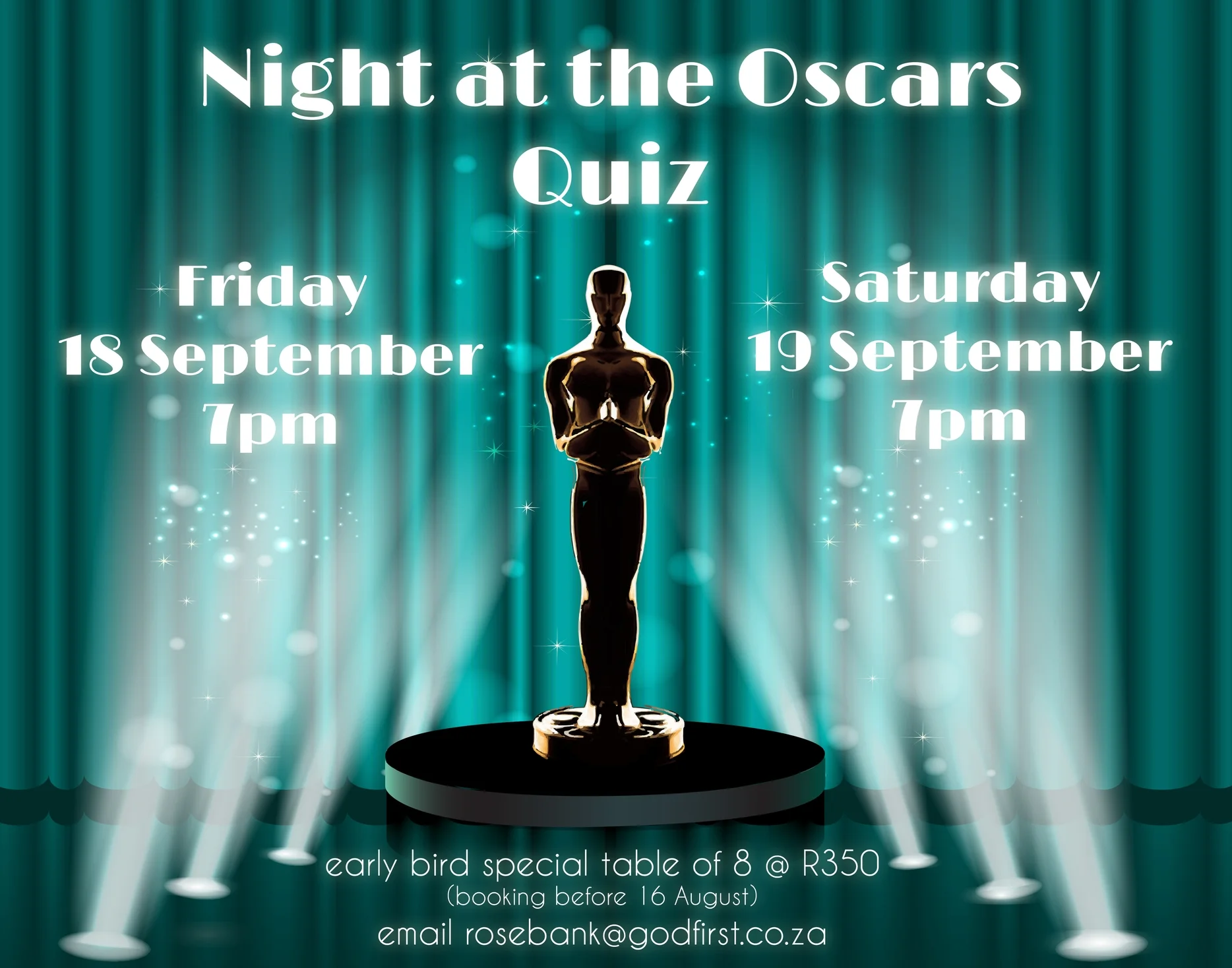 EFT Payments: GodFirst ChurchFNB Melrose Arch 254 405 Acc. 62348049562 (Ref. Quiz & Name)